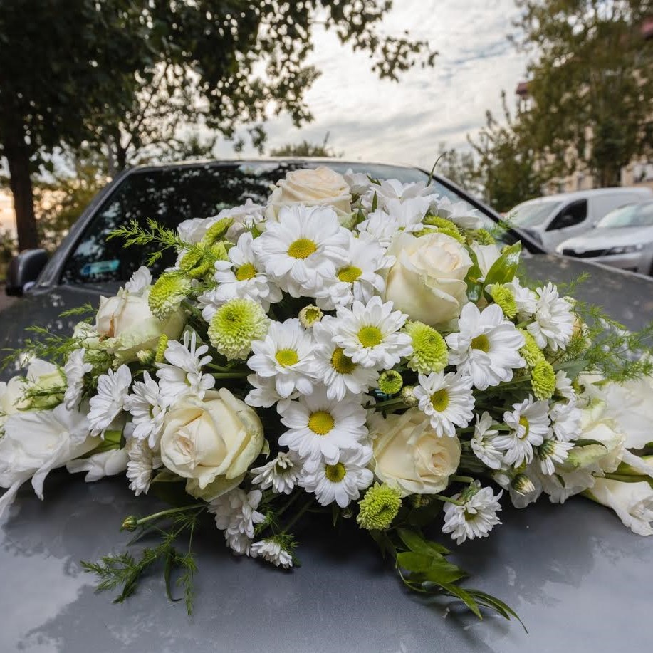 Autódísz, templomdísz, ceremóniahely díszítés, fogadási helyszín díszítés